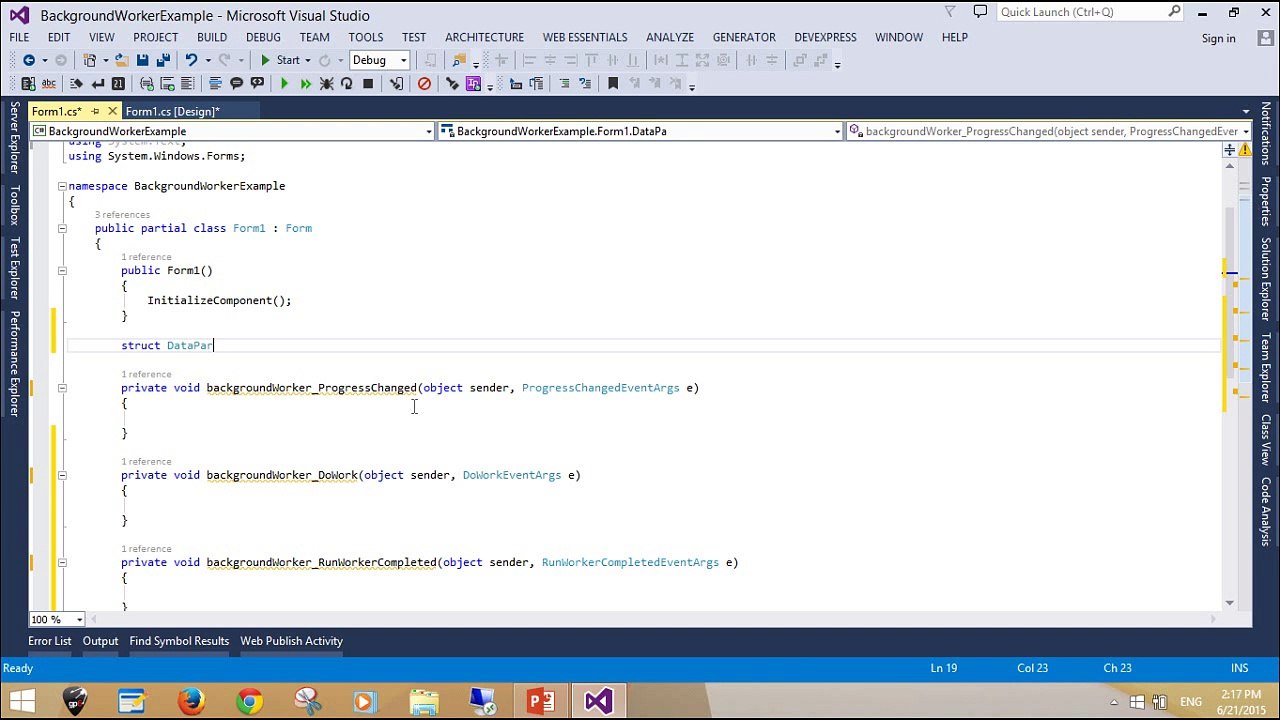 It’s easy and not a complex task as it sounds, so let’s have a look at. Private void backgroundWorker1_DoWork( object sender, DoWorkEventArgs e). This is the preferred technique for handling the event in a derived class.